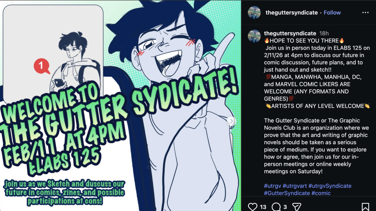 EDINBURG – The Gutter Syndicate at UTRGV is a graphic novels club based on the Edinburg campus...