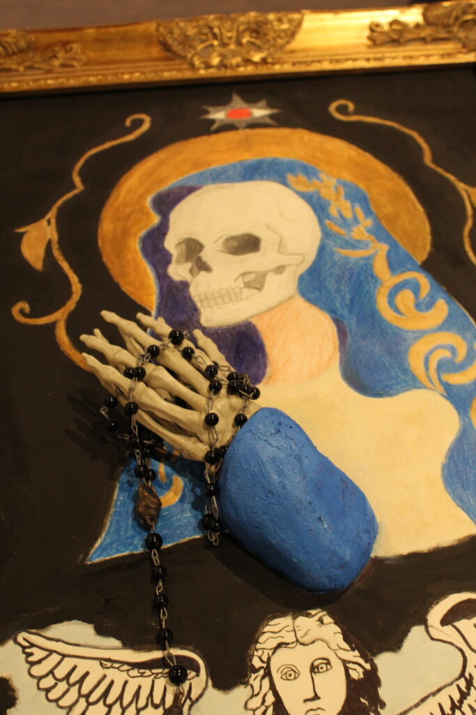“My piece talks about not being granted peace after death,” said Riabova. “It talks about judgement just how death are both uncontrollable things. It’s a self-portrait because I’m terrified of those things, right? The uncertainty of it. So, I kind of like created this piece to help have some like control over that.”